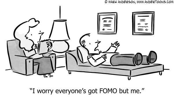 Although the above scenario will most likely not trouble the experienced investors at B&R Beurs, it is important to be aware of this psychological adversary. The fear of missing out (FOMO) phenomenon is best described as an experience of anxiety that occurs when an individual fears that he/she is missing out on information, events or decisions that could make their life better. Think of examples such as seeing that all of your friends are going to a party while you are still at home, or resisting the urge to buy a pair of shoes that has a “one day only” discount while you shouldn’t be spending any money. Although the feeling of anxiety you experience is a remnant of your evolutionary survival instinct (fearing that you will be left behind by the group), it has become increasingly more pronounced over the past decade due to the introduction of social media. At any time of the day, you are exposed to notifications about ongoing events, and the successes of others. This frequently leads to counter-productive decisions, such as increased stress and irrational decision-making.