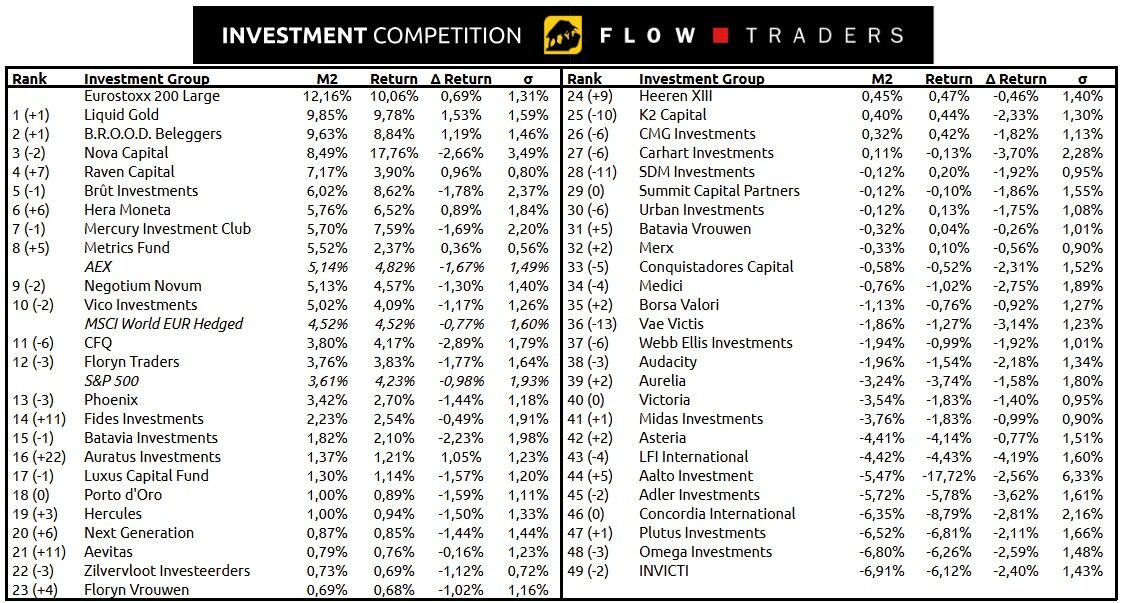 Several investment groups made significant moves this week, with Fides, Auratus, and Aevitas climbing the rankings to secure a place on the left side of the standings. As the competition has shown once again, anything can happen. Make sure to stay up to date and continuously assess your portfolio!