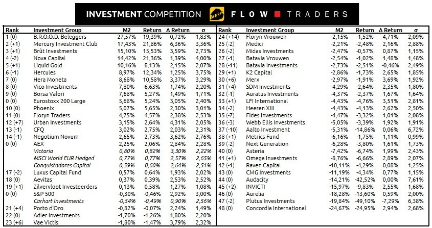 Nova Capital couldn’t hold on to their top 3 spot and dropped to fourth, despite still posting a solid return. Taking their place is Mercury, who climbs one place to secure 2nd spot. Brût Investments also moves up one place to 3rd, continuing their strong performance from last weeks.
